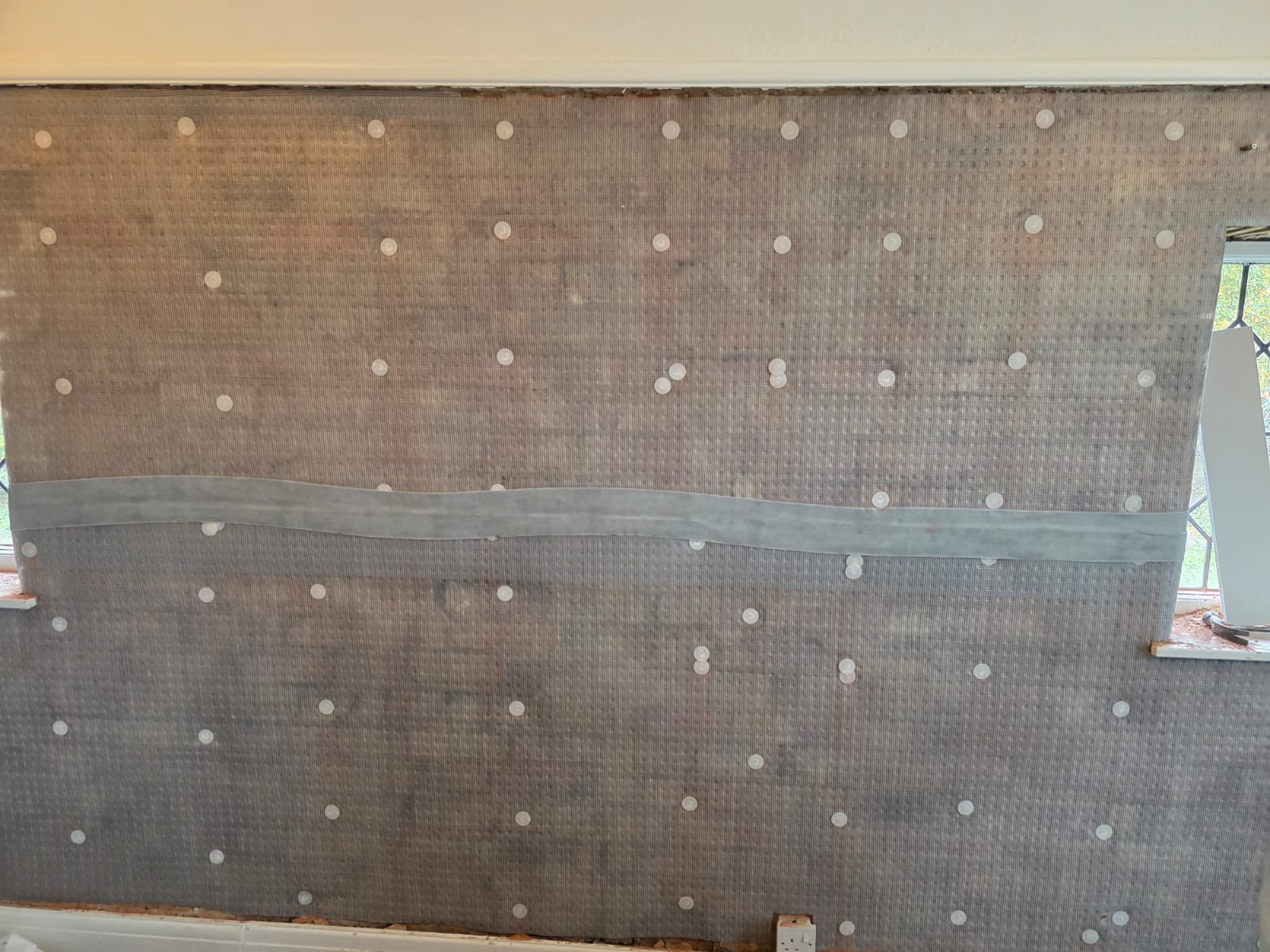 A breathable membrane installed over damp or contaminated walls to create a dry stable surface ready for plastering or rendering.